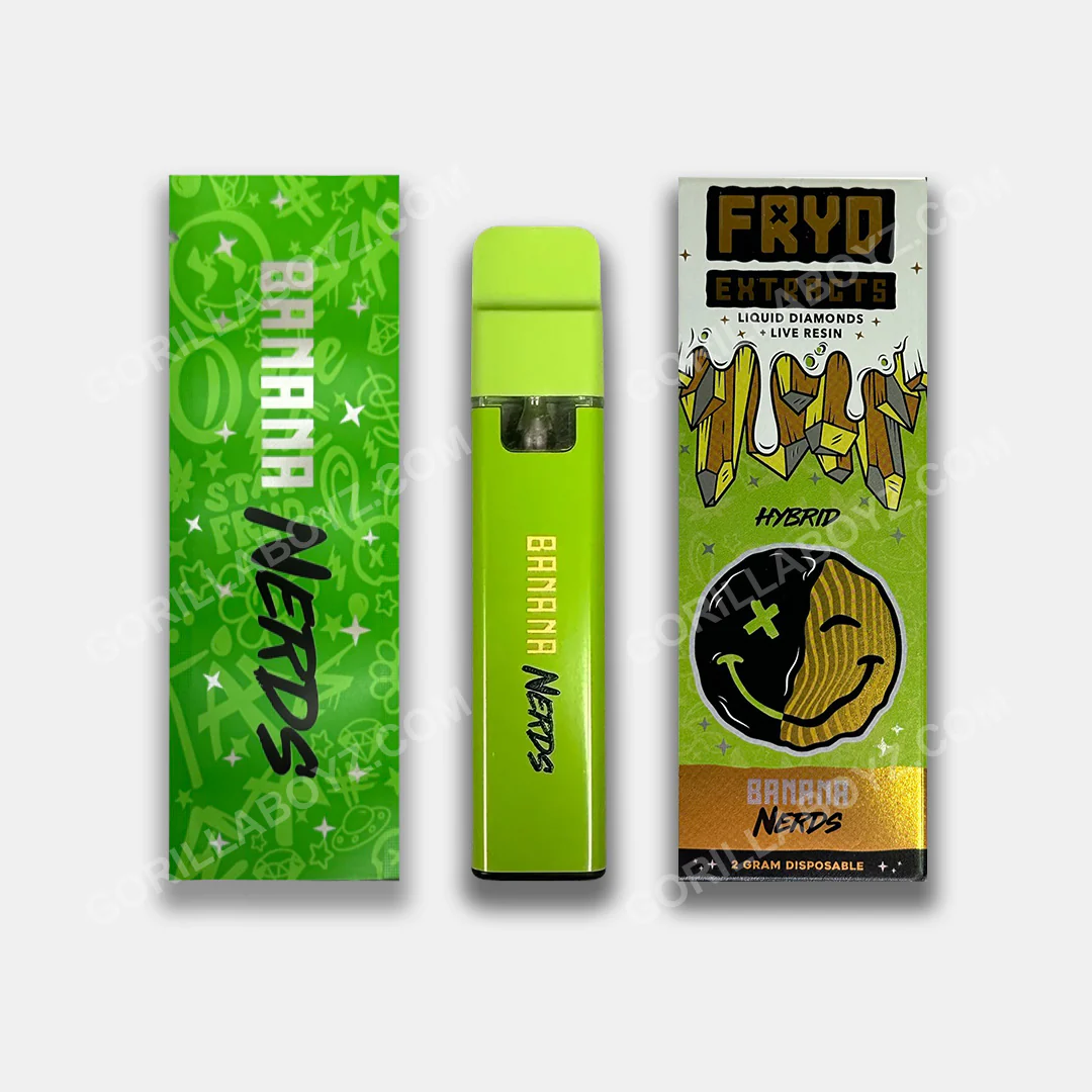 However, the joy doesn’t end there – Fryd Banana Nerdz also incorporates the essence of timeless candy, enhancing the sweetness and evoking a nostalgic sensation for your vaping journey.